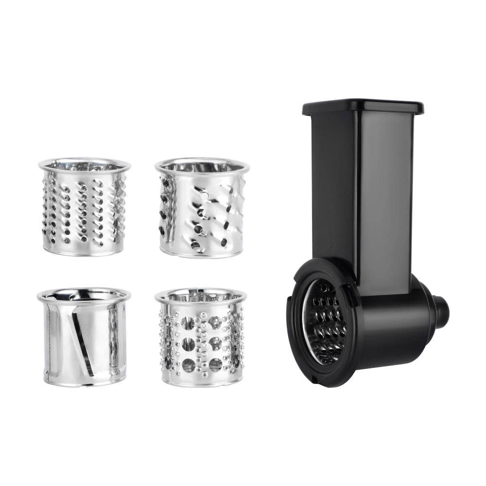Универсальная насадка-овощерезка с 4 сменными лезвиями идеально подходит для быстрой подготовки ингредиентов. В комплекте Вы найдете мелкую и крупную терку, слайсер для тонких ломтиков и специальную терку для идеальных драников.