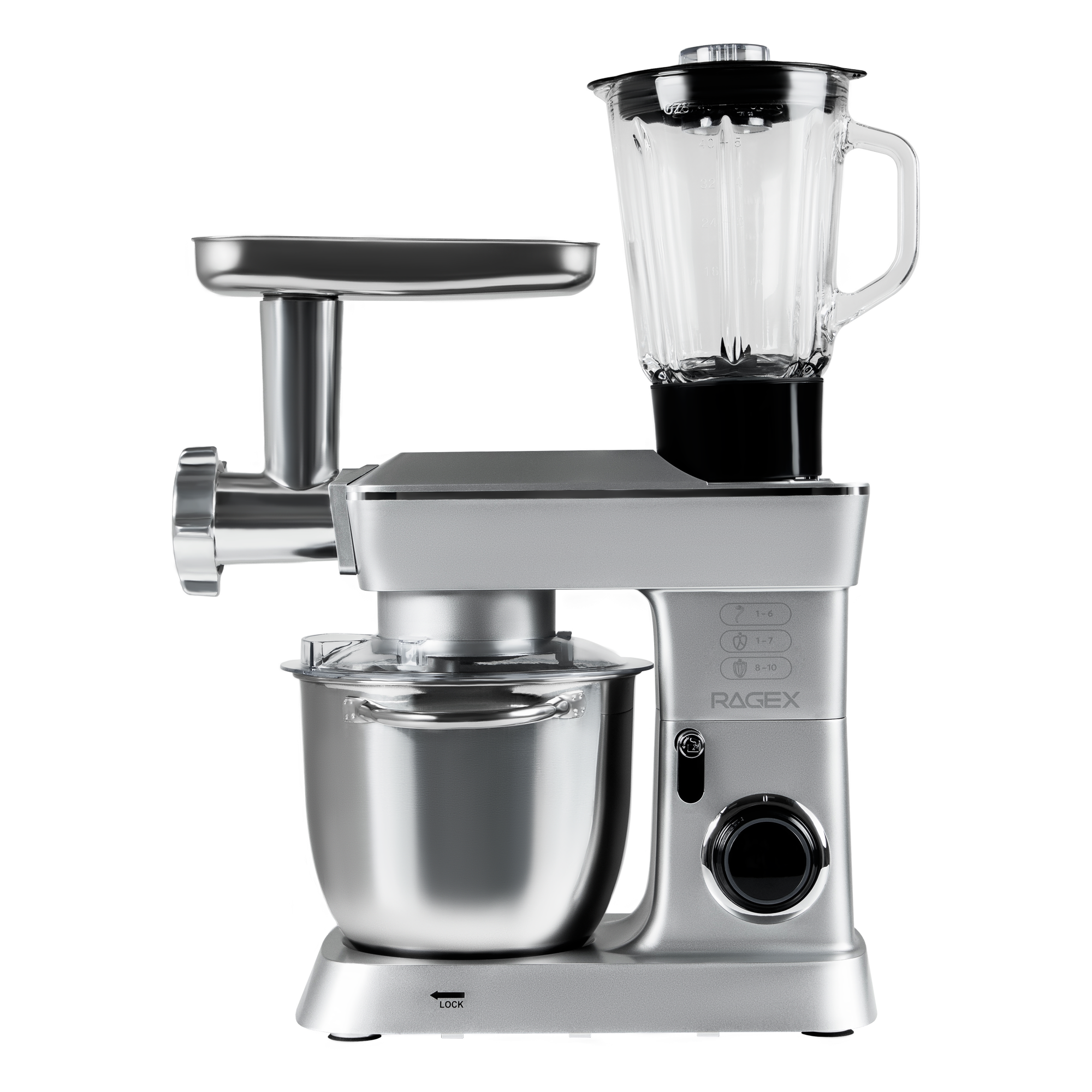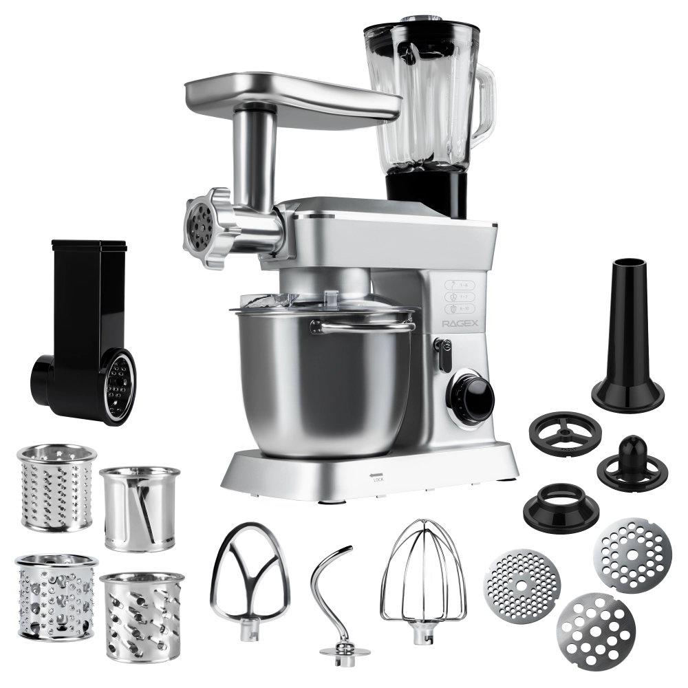Кухонный комбайн 14 в 1 RAGEX R112, 4.5л, 1300Вт, цвет: 900 (серебристый)