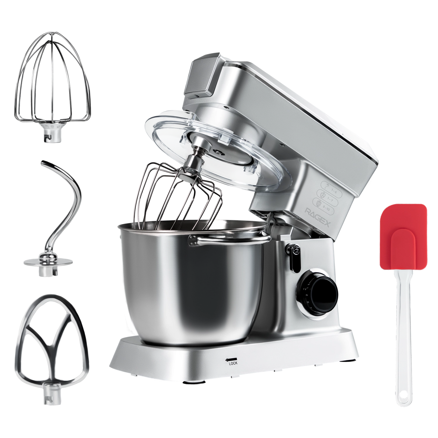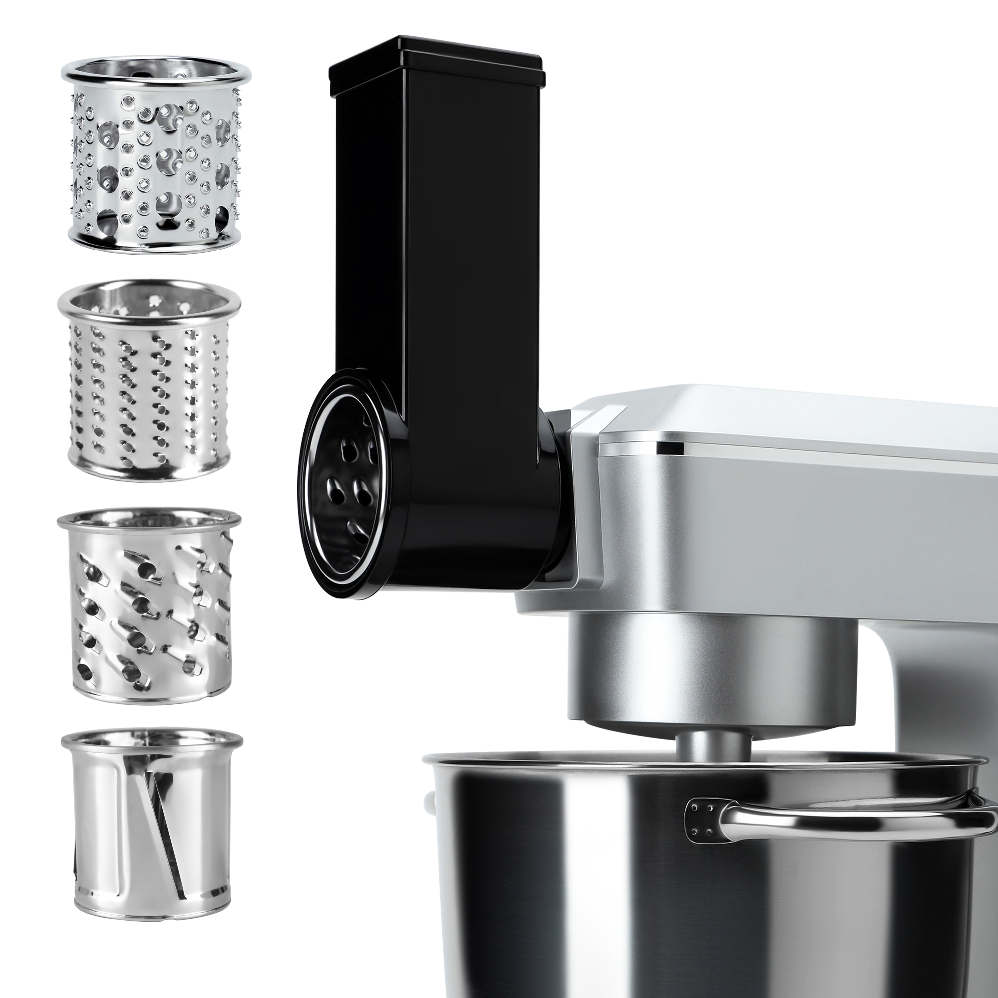 Набор включает в себя крюк для теста, плоский битер и венчик. Каждая из этих насадок расширяет функциональность планетарного миксера, позволяя добиться идеальных текстур