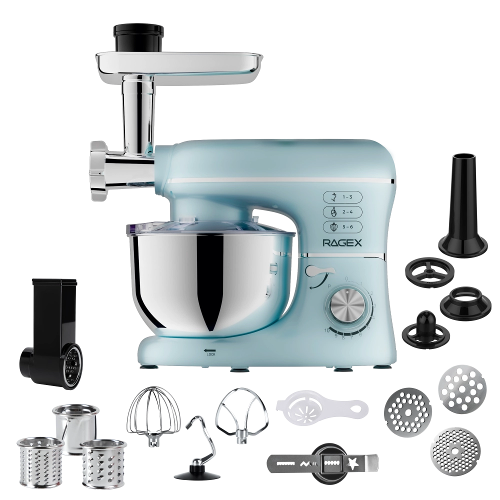Кухонный комбайн 14 в 1 RAGEX R116, 5.5л, 1300Вт, цвет: 419 (лазурно-голубой)