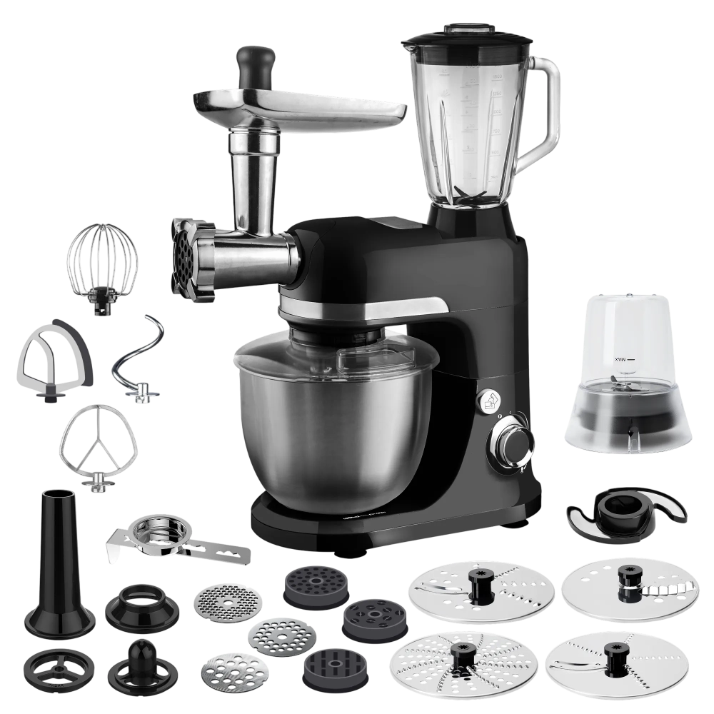 Кухонный комбайн Чаша планетарного миксера Защитная крышка от брызг Крюк для теста Плоский битер Битер с гибкими краями Flex Edge Венчик для взбивания Блендер Мясорубка (корпус мясорубки, толкатель, лоток, шнек, нож, гайка зажимная, решетки с отверстиями (3мм, 5мм, 7мм) Насадка для сосисок, насадка для колбасок «кеббе», разделитель для колбасок «кеббе» Диск – 4 шт (тонкое лезвие для нарезки, толстое лезвие для нарезки, тонкое лезвие для нарезки соломкой, толстое лезвие для нарезки соломкой, лезвие для нарезки картофеля фри, лезвие для измельчения) Насадка для печенья Насадка для пасты (3 шт) Кофемолка Соковыжималка; Руководство пользователя Подарочная коробка + транспортировочная коробка -
