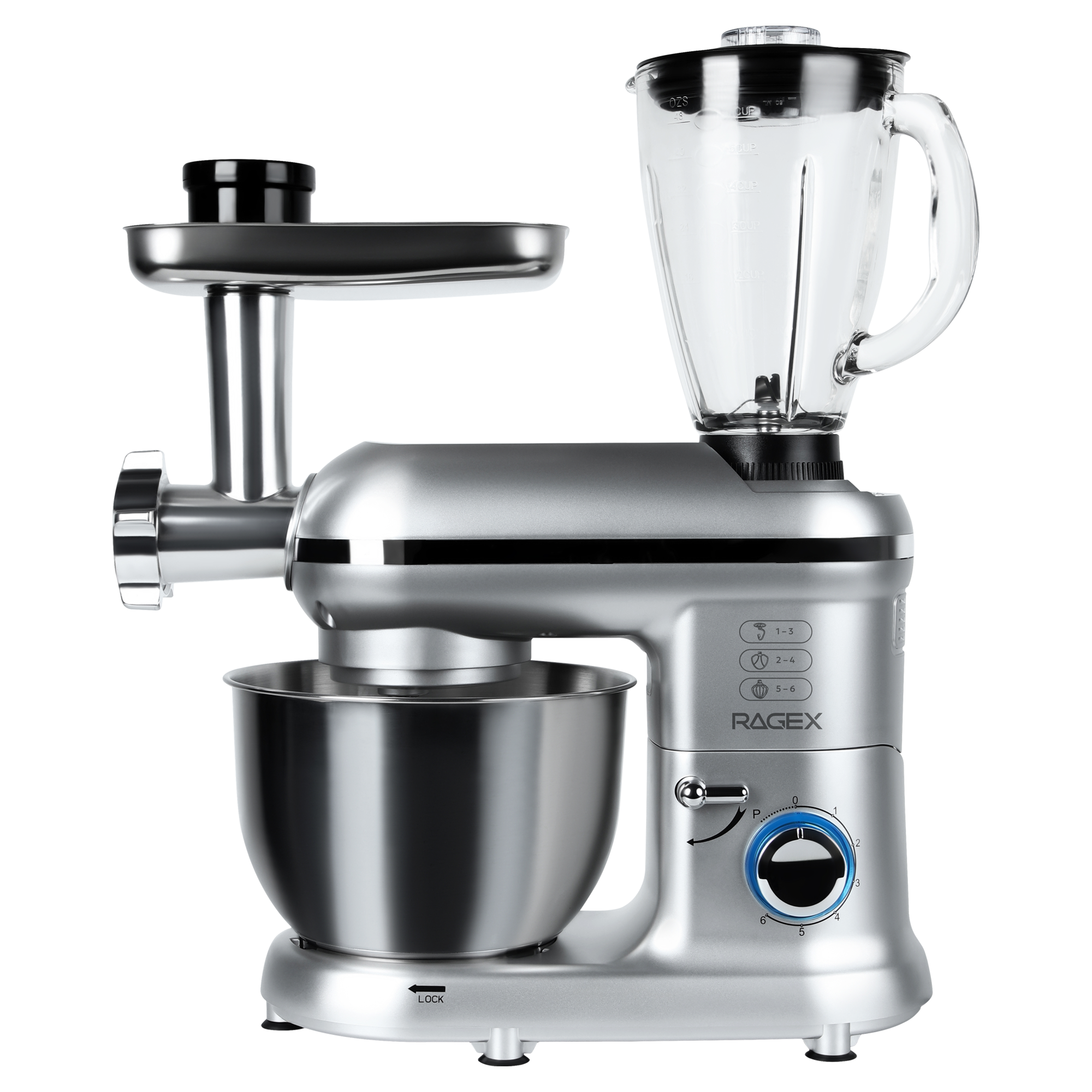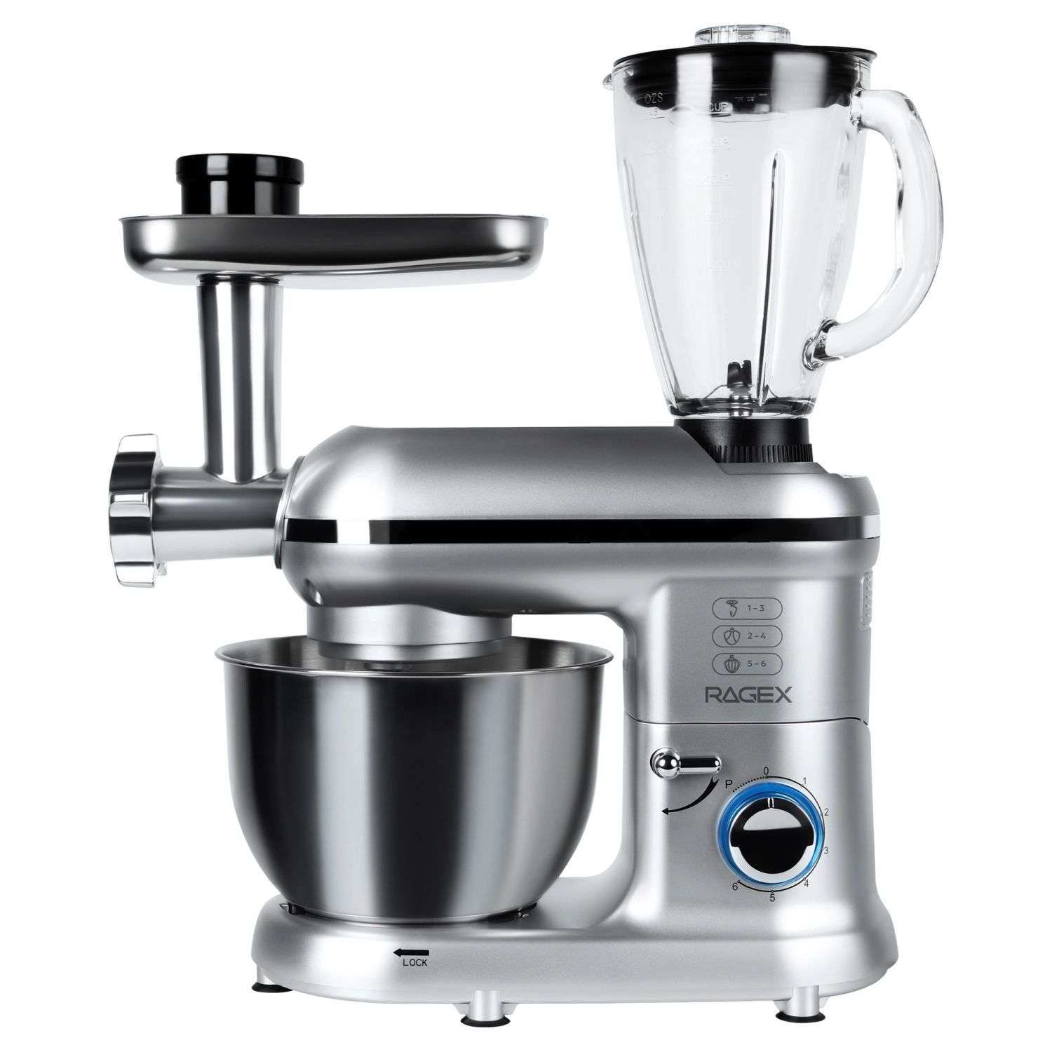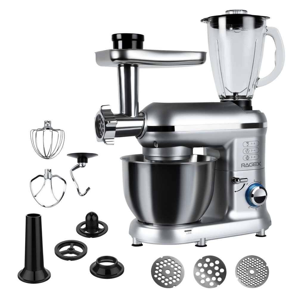 Кухонный комбайн 9 в 1 RAGEX R101, 4.5л, 1500Вт, цвет: 900 (серебристый)