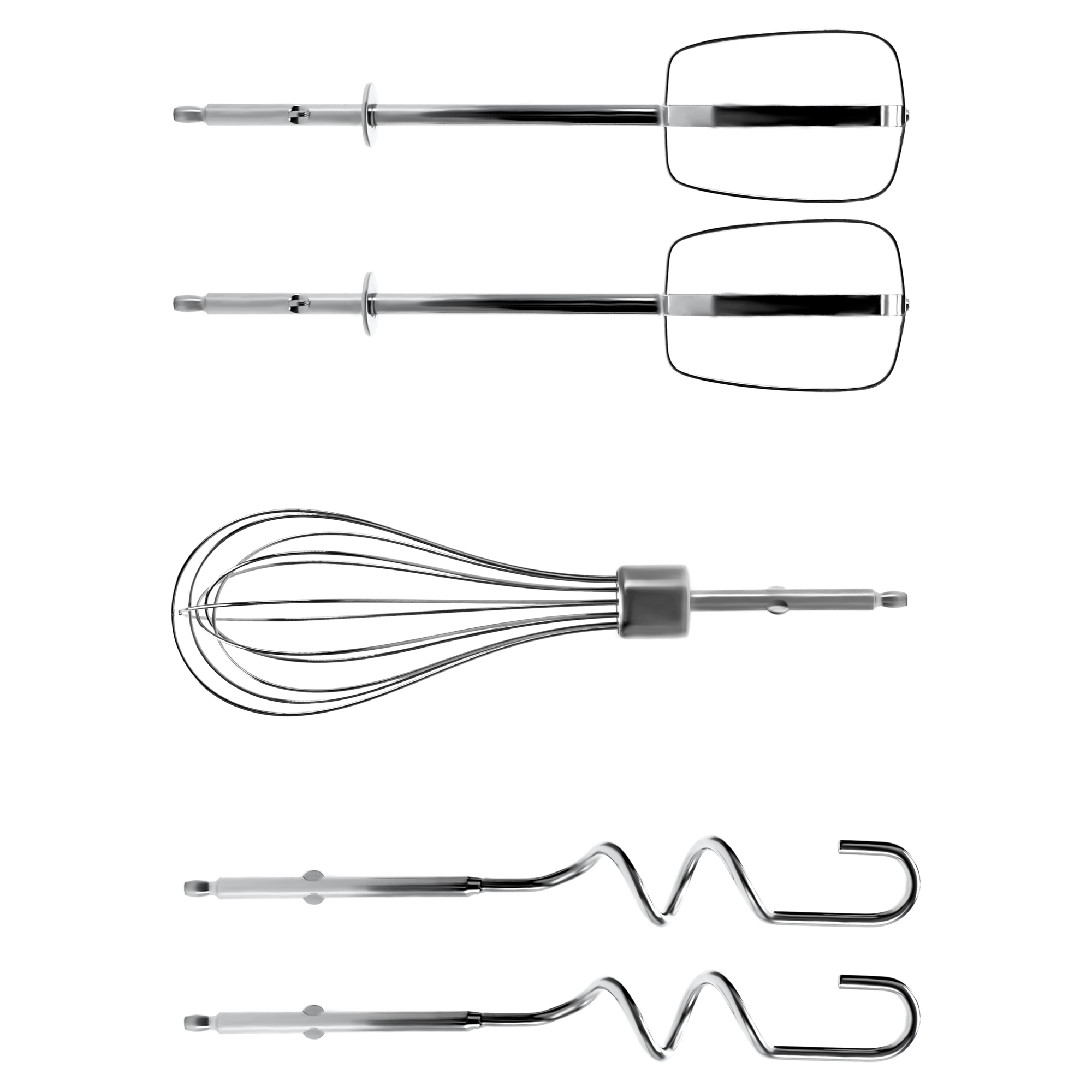 Ручной миксер Венчик для взбивания (1 шт) Крюк для теста (2 шт) Насадка для взбивания (2 шт) Руководство пользователя Транспортировочная коробка Подарочная коробка -