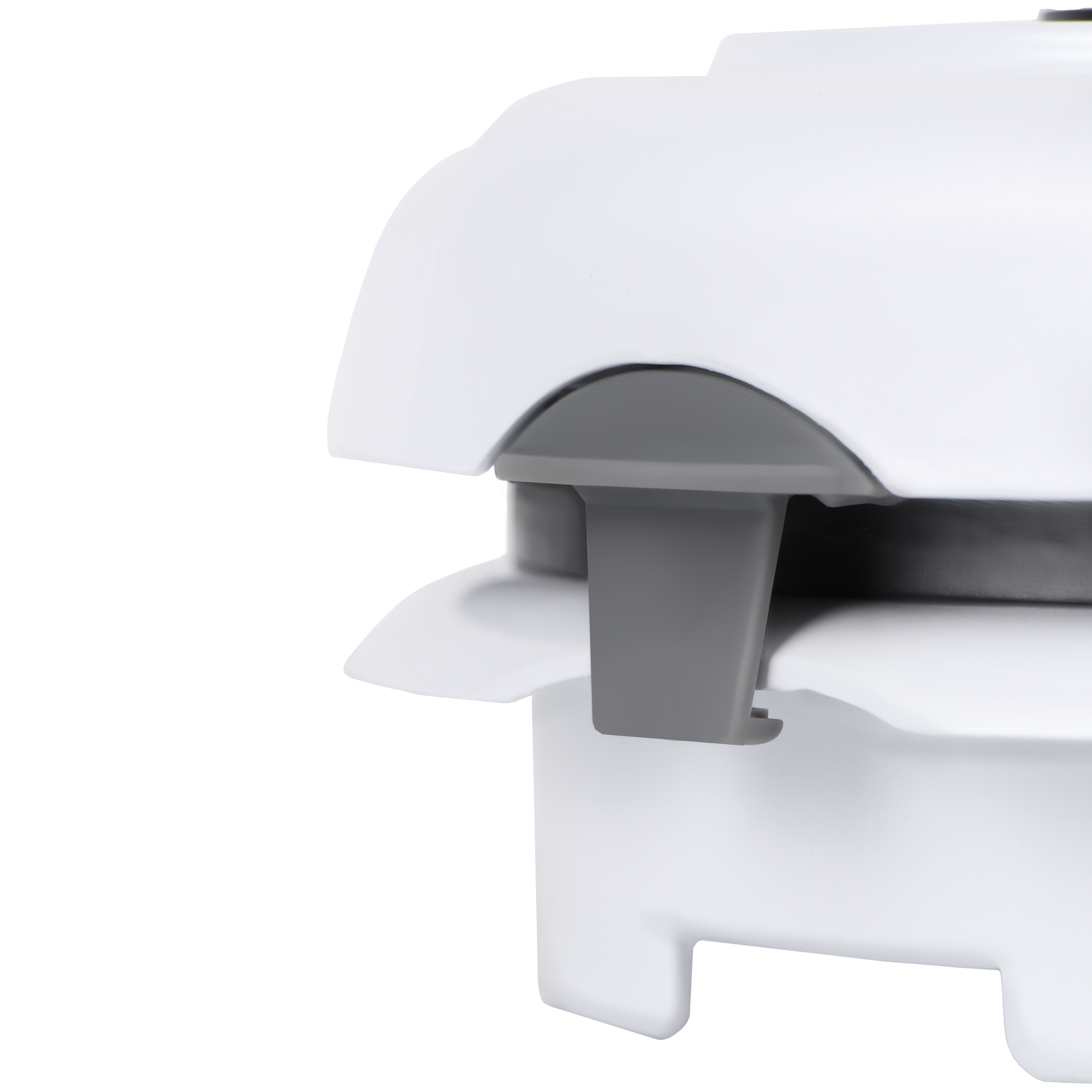 Индикатор показывает готовность прибора, а термозащищённая ручка и защёлка‑фиксатор обеспечивают безопасное открытие и закрытие крышки